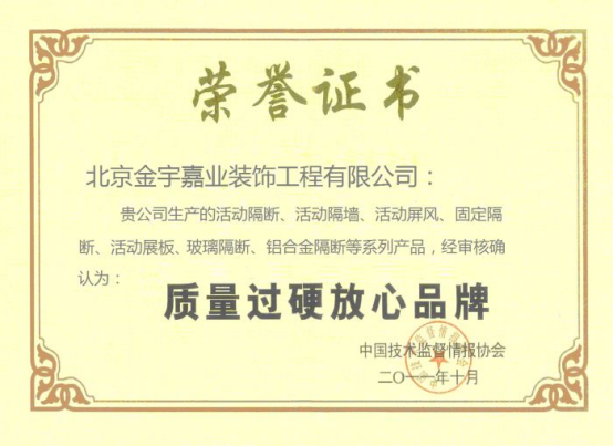 以质量为根本,以诚信谋发展。我司在隔断行业深耕十余年,已先后荣获多项荣誉资质。